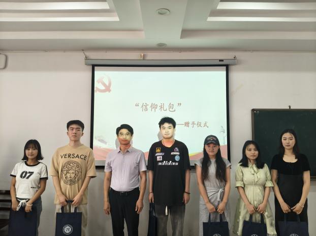 紧接着是“信仰礼包”赠予仪式,礼包中的党章、党徽等物质载体,将抽象信仰转化为具象存在。同时这份礼包还承载着学院深深的期望与祝福,指引毕业生以党章为镜、以信仰为帆,勇往直前。