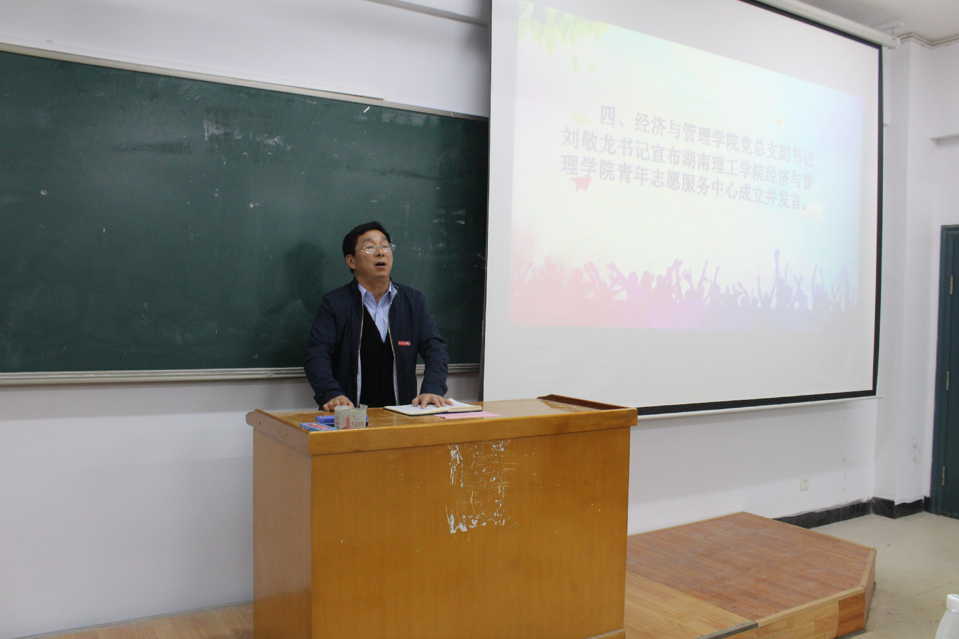 最后,刘敬龙书记宣布经济与管理学院青年志愿服务中心成立正式成立。他强调,青年志愿服务工作十分重要,不仅是推动了院共青团工作的新创举,更是我院贯彻并落实党的十九大精神的具体行动。刘书记表示,在今后要积极发挥青志中心组织服务的功能,吸引更多的大学生到志愿服务的队伍中来,要鼓励同学们以高涨的热情、辛勤的汗水、以及青春的热血为志愿服务添上一抹抹光辉!