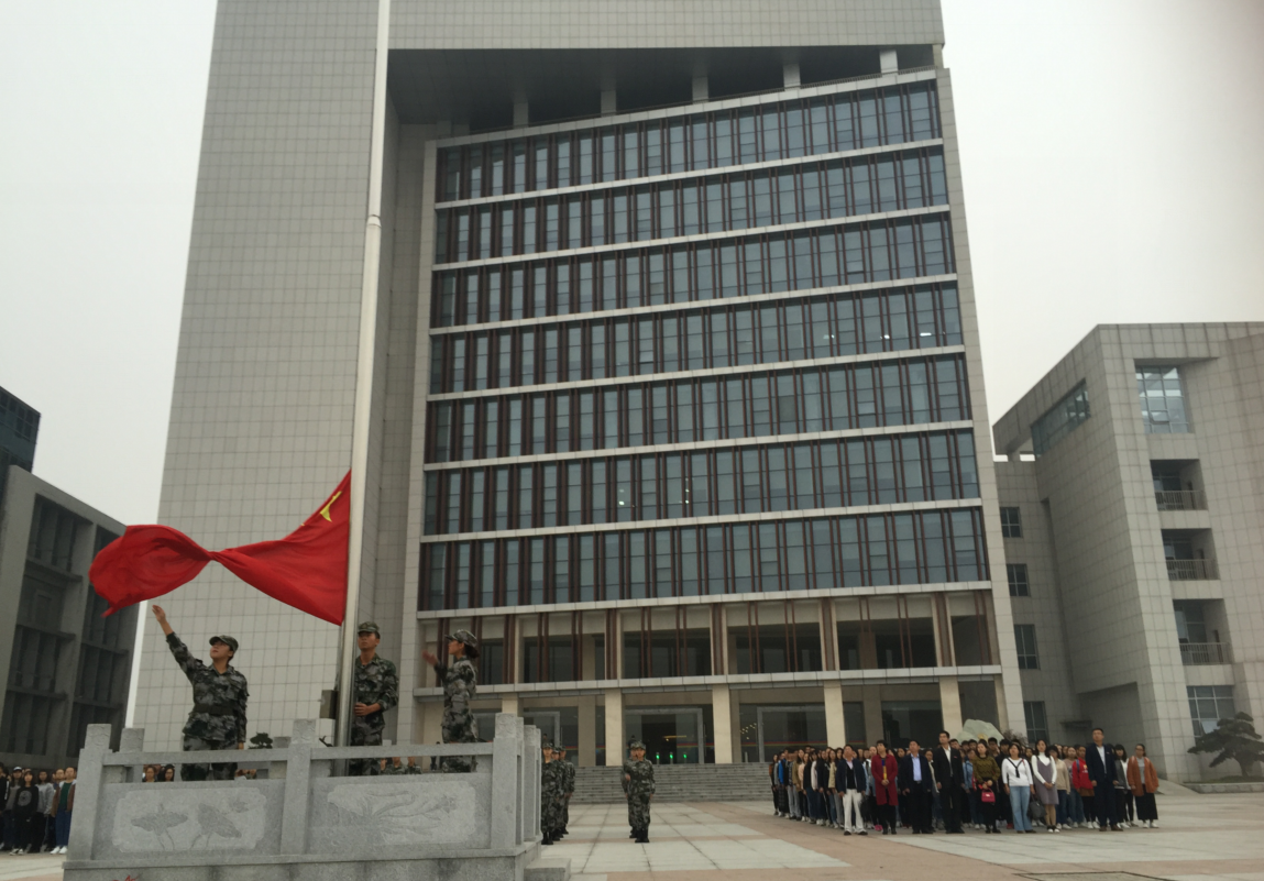 升朝阳之旗,燃青春之我。10月23日上午7点,经管学院在南院新图书馆前国旗广场上隆重举行了本学期第九周升国旗仪式。湖南理工学院学工部副部长王云朋、经管学院院长徐四星、院党总支书记王淑霞、院党总支副书记刘敬龙、学生工作办公室全体老师以及经管学院2017级全体学生出席了此次仪式。
