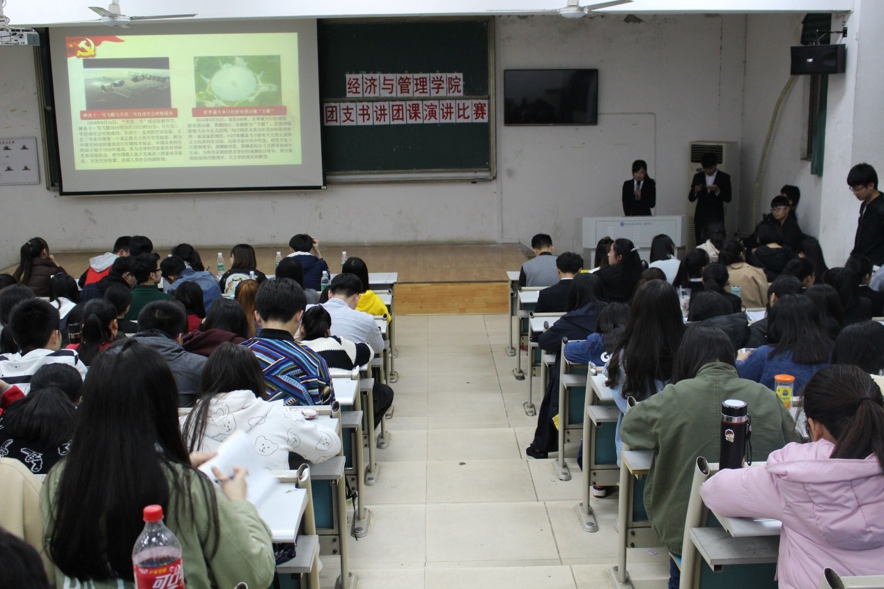 为了深入学习贯彻习近平总书记系列重要讲话精神,激发广大共青团员的光荣感和使命感,经管学院于3月30日晚在8T1举办了 “团支书讲团课”演讲比赛。经管学院团总支书记易振铭与特邀嘉宾——各学院团学分会代表担任了此次比赛的评委。