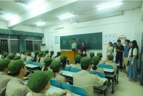 9月11日晚,我院2016级新生在八栋教学楼各教室迎接教官,我院党总支副书记刘敬龙老师,团总支书记及2016级新生辅导员易振铭老 师,以及所有2016级班主任老师到场欢迎教官的到来。各连教官对新生提出了一系列有关军训的要求,希望我院2016级新生能严格要求自己,遵守军纪,在军训期间争创佳绩。